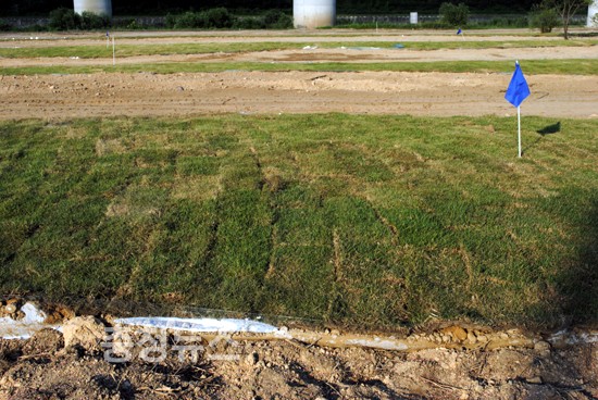 이미 공사가 완료된 14개 홀은 골프장에 깔린 잔디의 상태가 울퉁불퉁하고, 홀과 홀 사이의 러프지역도 맨땅에다가 씨앗만 심어놓은 채 조잡하게 공사가 진행중이었다.