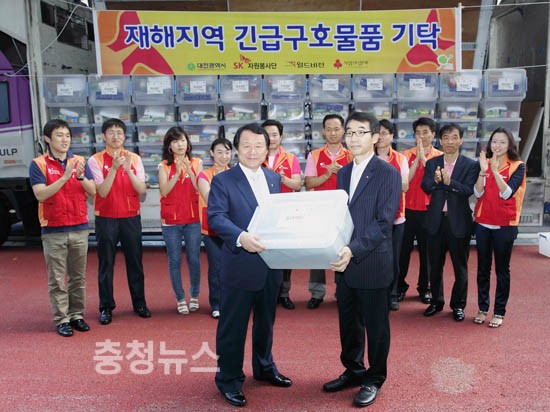 대전시, SK텔레콤 중부마케팅본부로 부터 긴급 구호품 받아