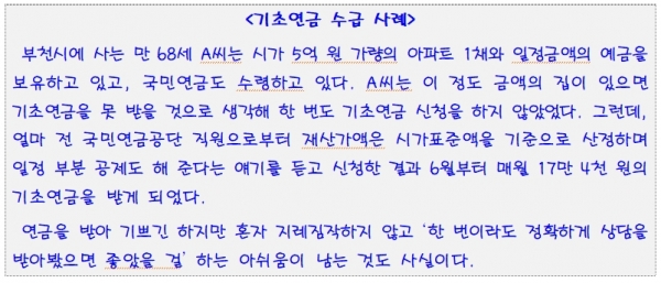대부분의 어르신들이 제도 자체는 잘 인지하고 계시지만, 제도의 복잡성과 사례의 A씨와 같이 제도에 대한 오해로 인해 연금을 받을 수 있는 소중한 권리를 찾지 못한 경우도 있는 것이 사실이다.