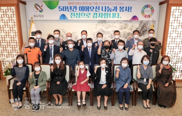 김홍장 당진시장 사회봉사부문 ‘강천’씨 수상자와 함께