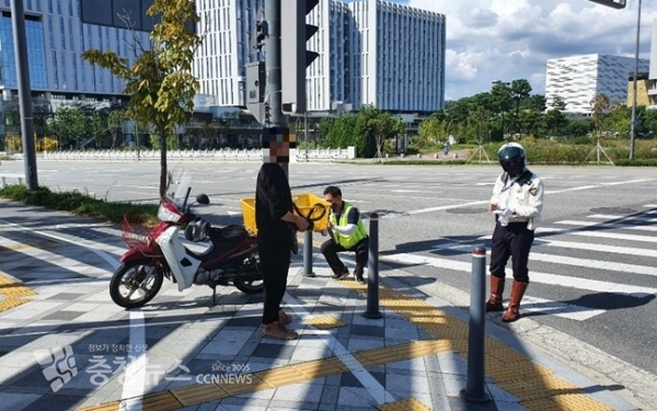 세종경찰서(서장 안태정)는 코로나-19로 배달운행이 증가함에 따라 이륜차의 교통법규위반으로 인한 교통사고 위험이 높아 유관기관 (시청·한국교통안전공단)과 합동으로 이륜차 집중단속을 실시하기로 했다.