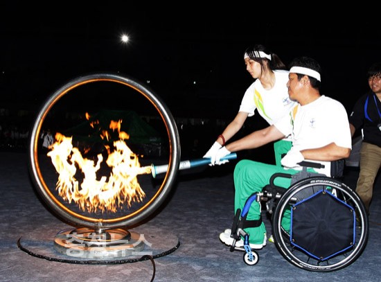 한편, 세븐, 싸이, 포미닛, 박현빈 등의 축하공연 무대가 펼쳐져 무엇보다 선수들과 대전 시민들을 위해 일반 공연무대에서는 볼 수 없는 특별한 퍼포먼스도 펼쳐져 장애인체육대회의 개막을 축하했다.