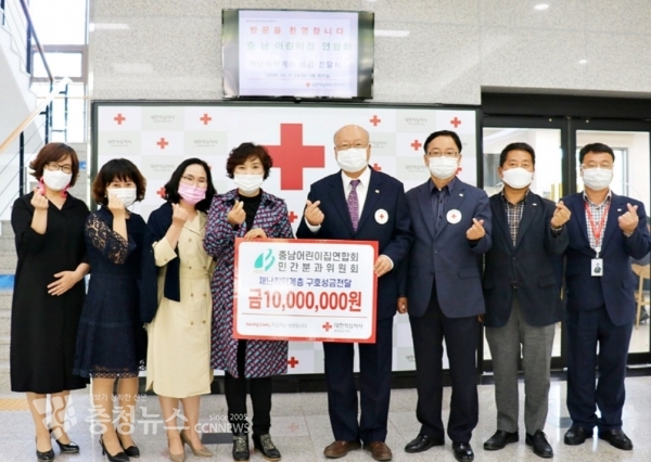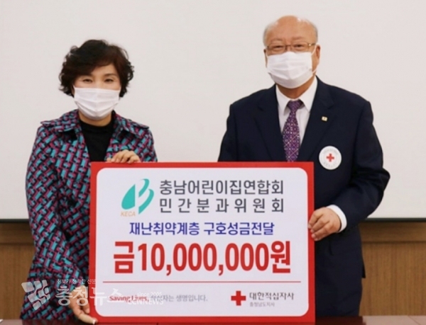 충남어린이집 연합회 민간분과위원회(회장 김선희)는 7일 재난취약계층 구호 성금 1천만 원을 대한적십자사 충남지사(회장 유창기)에 전달했다.