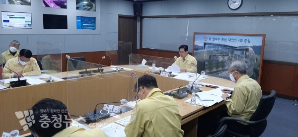 양승조 지사는 9일 도청 재난종합상황실에서 아프리카돼지열병 유입 차단을 위한 긴급방역대책회의를 개최했다.