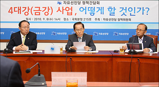 또한 이회창 대표는 정부가 주장하는 4대강 사업의 필요성에 대해 "홍수문제는 4대강에서가 아니라 지류, 하천에서 일어났으며 정부에서 발표한 물 부족량과 실제는 다르다는 통계가 있고 수질은 전 정권부터 개선·향상시켜 온 것으로 현 정부 주장과 다르다"고 언급했다.