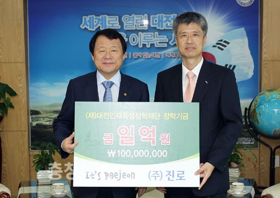대전인재육성장학재단, (주)진로로 부터 1억원 기탁 받아