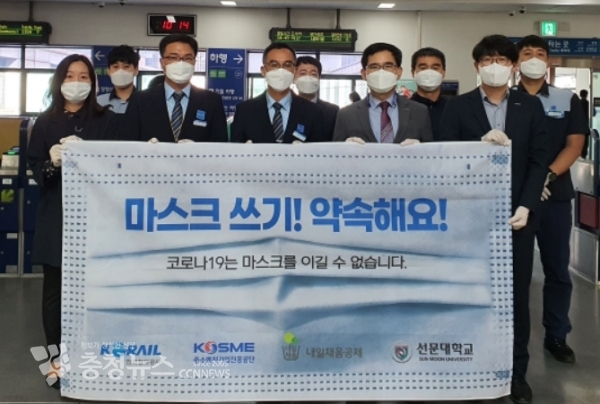 이와 함께 천안역사에서 시민들을 대상으로 마스크를 배포하며 안전한 열차이용을 당부했다.