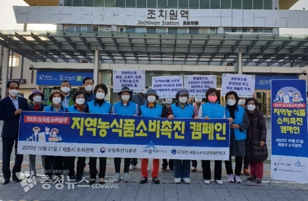 사)대전·세종소비자공익네트워크(회장 도정자)는 21일 세종시 조치원역에서 “지역농산물 소비촉진 위한 홍보캠페인”을 전개했다.