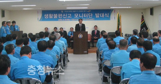 대전 동구(구청장 한현택)는 발로 뛰는 현장행정 강화를 위해 28일 홍도동에 위치한 동구운전자 푸른쉼터에서 모범운전자회를 활용한 생활불편신고 모니터단 발대식을 가졌다.