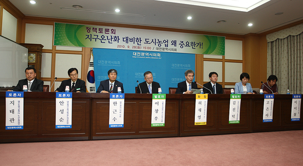 대전시의회 한근수 (유성4선거구, 선진당)의원은 ‘지구온난화에 대비한 도시농업 활성화 방안에 관한 조례 제정’을 위해 도시생태농업분야 전문가를 초청 정책토론회를 개최했다.