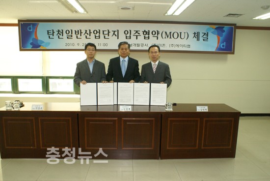 충남개발공사(사장 김광배)가 조성중인「탄천산업단지」에 수도권 기업들이 속속 입주하고 있다. 충남개발공사는 지난 6월 삼화페인트를 유치한데 이어 28일 (주)미존, (주)에이티랩 등 2개의 수도권기업과 입주협약(MOU)을 체결했다고 밝혔다.