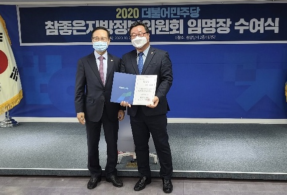 대전시의회 행정자치위원장을 맡고 있는 홍종원 의원(더불어민주당, 중구2)은 27일 서울 여의도 민주당 당사에서 참좋은지방정부위원회(위원장 홍영표) 상임위원으로 임명됐다.