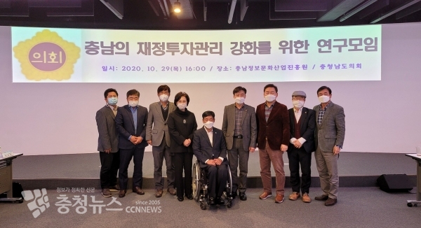 충남도의회 ‘충청남도의 재정투자관리 강화를 위한 연구모임(대표 이공휘 의원)’은 29일 충남정보문화산업진흥원 회의실에서 ‘민간보조금 예산편성·심의 시 원가 산정 검토 매뉴얼 작성’ 연구용역 중간보고회를 가졌다.