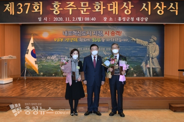 홍성군이 2일 군청 대강당에서 직원모임을 개최하고 홍주문화대상의 수상자와 나눔실천 유공군민에 대한 표창을 전수했다.