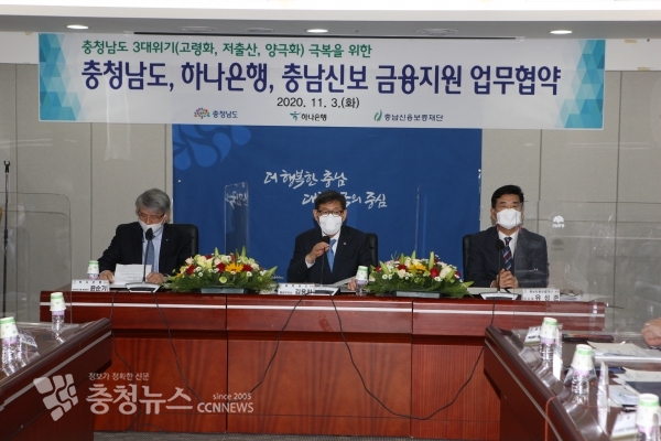 3일 도청 회의실에서 ‘충청남도 3대 위기 극복을 위한 중소기업·소상공인 금융지원 업무협약’을 체결했다.