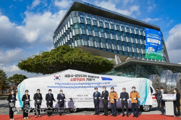 시는 3일 시청 광장에서 이춘희 시장, 롱 디망쉬(Long Dimanche) 주한 캄보디아 대사, 이용일 국제관계대사, 강대훈 소방본부장 등이 참석한 가운데 구급차 기증식을 개최했다.