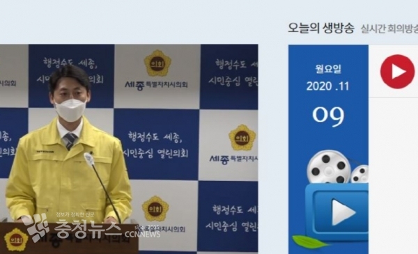 특히 온라인 중계 시스템 구축 이후 처음으로 9일 오후 2시에 열린 언론 브리핑이 세종시의회 공식 홈페이지와 페이스북을 통해 생중계됐다.