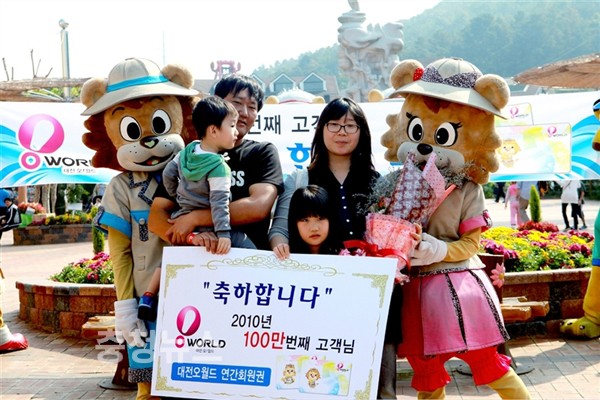 대전도시공사(사장 홍인희)는 대전오월드가 2010년 입장객 100만명을 돌파했다. 오월드는 17일 오전 11시 30분 경기도 평택에서 온 이지애씨가 100만번째로 입장했다고 밝혔다.