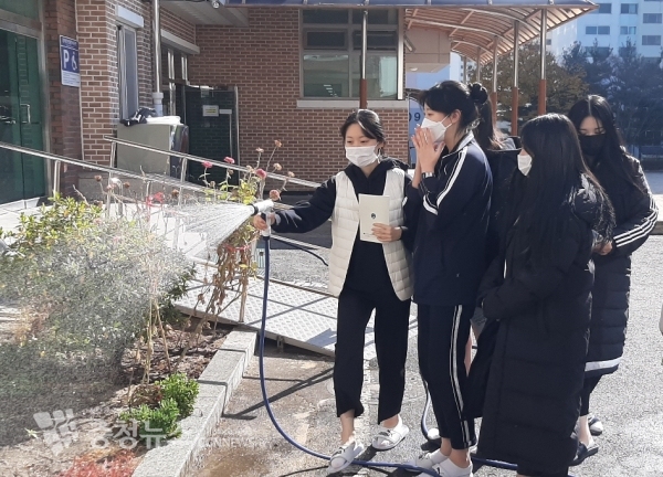 이차숙 교장은 ”학교 내 설치한 빗물저금통을 통하여 저장한 빗물을 학교 화단을 가꾸는 등 버려진 빗물 자원 재이용하는 활용도가 굉장히 크고 더불어 교육적인 효과도 높다“며 ”설치 지원한 대전세종소비자공익네트워크 관계자 및 금강유역환경청에 감사 인사를 드린다“고 말했다.