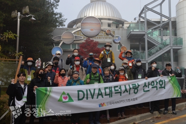 대덕사랑산악회, 대전 시민 천문대 앞에서 / 충청뉴스 최형순 기자
