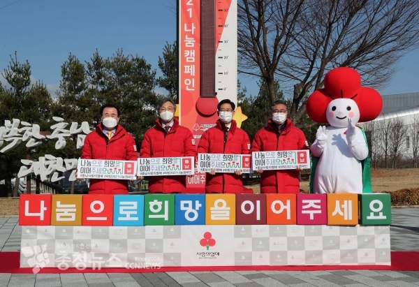 ‘희망 2021 나눔 캠페인’의 시작을 알리는 사랑의 온도탑 제막식이 30일 충남도청 광장에서 열렸다.