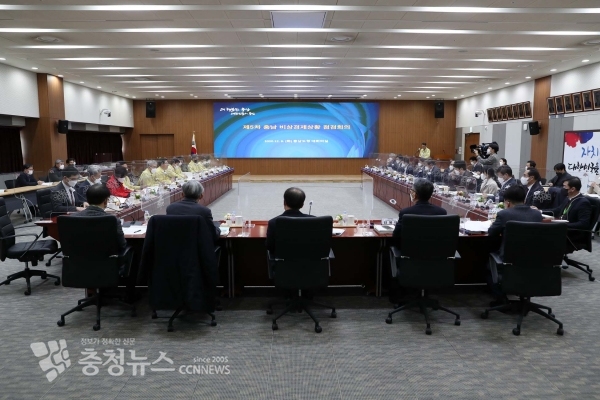 도는 8일 도청 대회의실에서 양승조 충남지사, 김용찬·이우성 행정·문화체육부지사, 실국장, 경제관련 공공기관, 전문가 등 30명이 참석한 가운데, ‘포스트코로나 대응 비상경제상황 점검회의’를 개최했다.