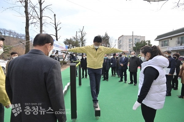 이어 양 지사와 참석자들은 어르신 놀이터에 설치한 놀이기구를 이용해 보고, 기능과 효과를 살폈다.