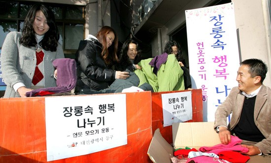 대전 동구(구청장 한현택)는 18일 장롱 속에서 잠자는 겨울 헌옷을 수거,‘장롱 속 행복 나누기 행사’를 개최했다.