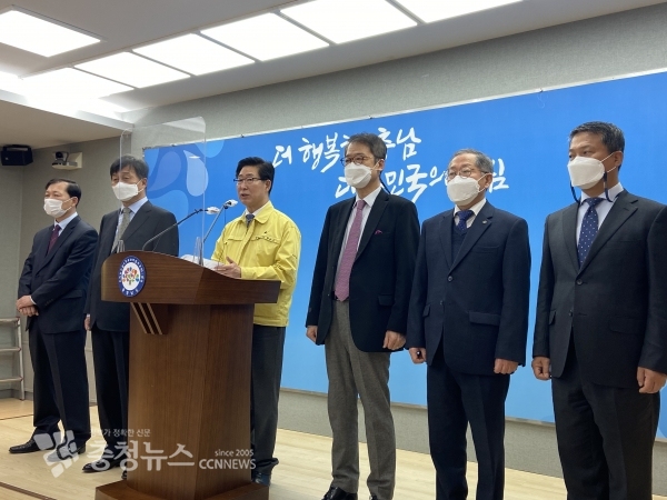 이날 협약에 이어 양승조 지사는 도청 프레스센터에서 기자회견을 갖고 “간호인력 부족과 대도시 편중은 지방 고령화와 맞물려 지역 의료 안전을 위협하는 심각한 문제”라며 “공공간호사 제도가 대한민국 확산되면 인력 수급의 커다란 전환점이 될 것이다. 정착될 수 있도록 최선을 다하겠다”고 밝혔다.