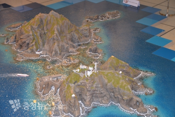 독도의 소개에서는 독도 실시간 영상, 독도의 지리ㆍ생성ㆍ기후 등 독도의 자연에 대한 정보를 알 수 있으며, 특히 실제 독도 크기의 1/500로 축소한 모형을 전시하여 독도를 보다 더 생생하게 느끼고 이해할 수 있다.