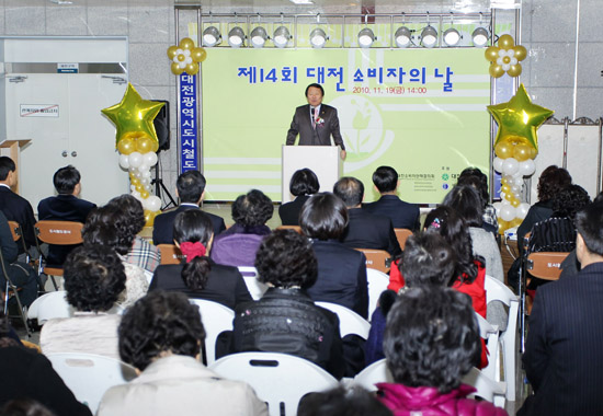 대전광역시는 제14회 소비자의 날 기념행사를 19일 오후 2시에 대전도시철도 시청역 로비에서 염홍철 대전광역시장을 비롯하여 학생, 시민, 소비자단체 회원, 기관·단체 대표 등 200여 명이 참석한 가운데 개최했다.