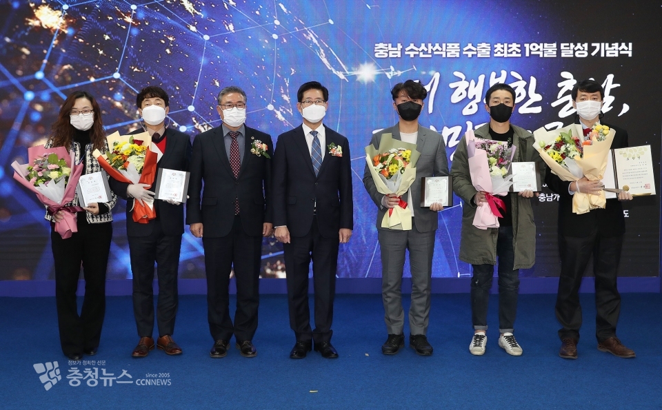도는 15일 내포신도시 충남개발공사 회의실에서 양승조 지사와 김명선 도의회 의장, 수산식품 수출 기업 및 유공자 등이 참석한 가운데 ‘충남 수산식품 수출 첫 1억불 달성 기념식’을 개최했다.