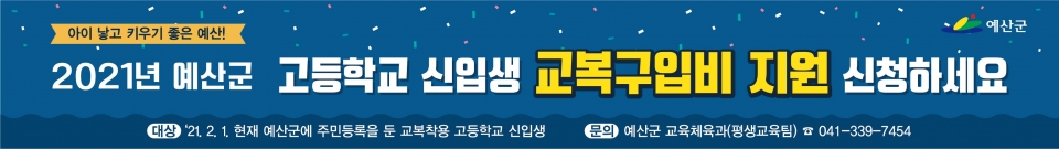 예산군은 학부모 교육비 부담 경감과 보편적 교육복지를 실현하기 위해 사회보장제도 신설 협의를 거쳐 올해에 이어 내년에도 고등학교 신입생에게 교복구입비를 지원한다.