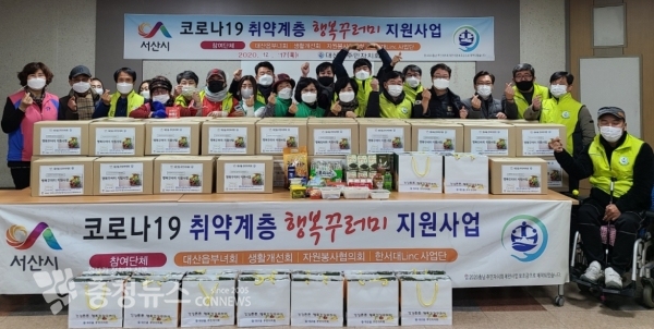 서산시 대산읍 주민자치회는 17일 관내 코로나19 취약계층을 위한 행복꾸러미 나눔 행사를 진행해 훈훈한 감동을 주었다.
