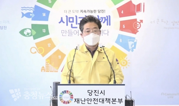 긴급 온라인 브리핑 하는 김홍장 당진시장