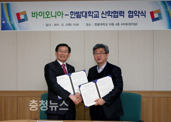 한밭대학교(총장 이원묵)는 12월 2일 10시 한밭대학교 산학협동관 4층 세미나실에서 (주)바이오니아(BIONEER/대표이사 박한오)와 산학협력협약을 체결했다.
