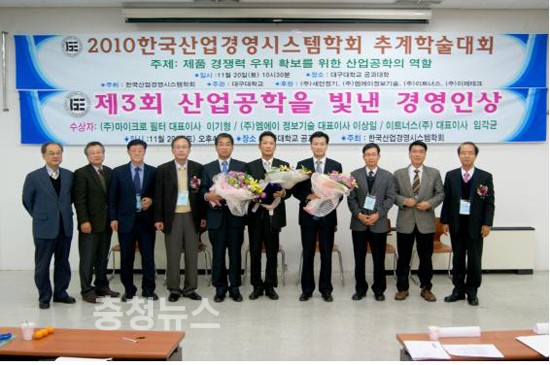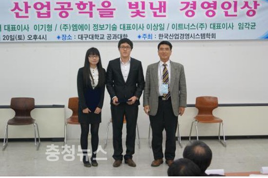 한편, 이번 학술대회에서 산업공학을 전공해 우수한 기업 성과를 일구어 낸 경영인에게 수여하는 “산업공학을 빛낸 경영인상”에는 한밭대학교 산업경영공학과를 졸업하고 현재 한밭대학교 정보통신대학원에 재학중인 (주)엠에이정보기술 이상일 대표가 수상했다.