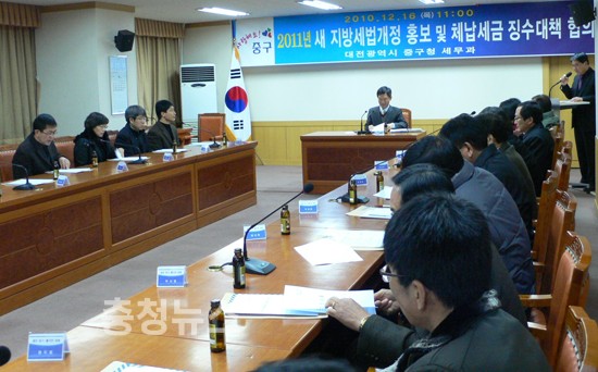 대전 중구(구청장 박용갑)는 16일 개정된 지방세법이 2011년 1월 1일부터 적용됨에 따라 주민들의 혼란을 예방하기 위해 동주민센터 주무계장을 대상으로 ‘지방세법 개정내용 교육’을 중회의실에서 개최했다.