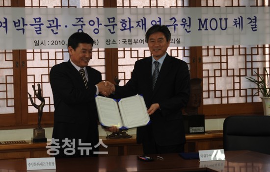 국립부여박물관(관장 강대규)은 국내 학술기관과의 교류협력 및 문화재 보존과학 활성화 방안의 일환으로 중앙문화재연구원(원장 조상기)과 학술 연구협력에 관한 협약을 16일 국립부여박물관에서 체결했다.