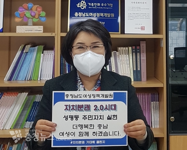 충청남도여성정책개발원 조양순 원장은 22일 자치분권 2.0시대 개막을 응원하는‘자치분권 기대해 챌린지’에 동참하고 공식 SNS에 응원 메시지를 올렸다.