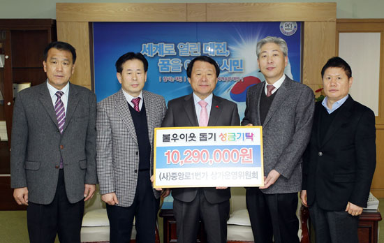 대전시는 22일 시청 응접실에서 염홍철 대전광역시장과 (사)중앙로지하상가 운영위원회 이재봉 회장 등 관계자들이 참석한 가운데 '불우이웃돕기 성금 기탁식'을 가졌다.