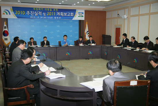 대전 대덕구(구청장 정용기)는 29일 구청 중회의실에서 간부공무원과 관계자 등 30여명이 참여한 가운데 어려운 재정을 슬기롭게 극복하기 위해 ‘재정운영 비상대책 보고회’를 가졌다.
