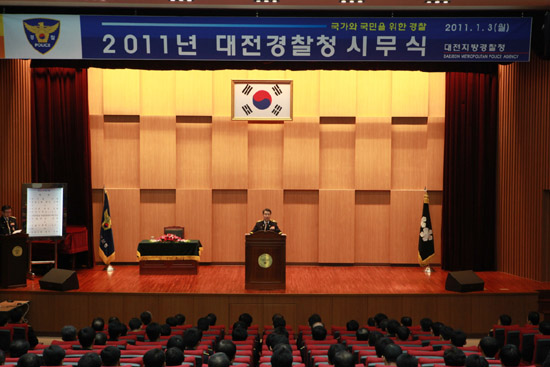 대전지방경찰청장(청장 김학배)은  3일  차장, 각 과장.담당관, 경찰서장과 함께 국립대전현충원 현충탑과 경찰묘역을 참배 한 후 지방청 전 직원이 참석한 무궁화홀 대강당에서 2011년 시무식을 갖고 업무를 시작했다.