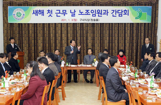 염홍철 대전시장은 3일 시청대강당에서 신묘년 시무식을 마친 후, 대전시 공무원노동조합 임양혁 위원장 등 임원 30여명과 구내식당 청솔홀에서 오찬간담회를 가졌다.