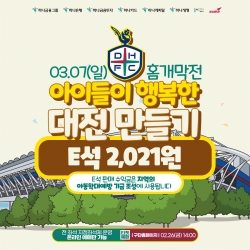 한편, 오는 3월 7일(일) 오후 1시 30분 대전월드컵경기장에서 개최되는 대전하나시티즌의 홈개막전 티켓 예매는 2월 26일(금) 오후 2시부터 시작되며 구단 공식 홈페이지(https://www.dhcfc.kr/)를 통해 구입할 수 있다.