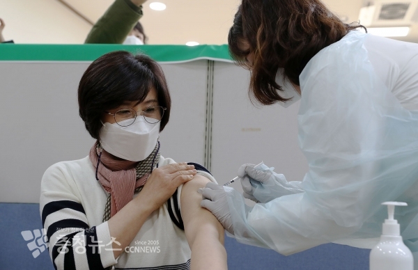 충남도 코로나19 예방 백신 접종이 26일 시작된 가운데 첫 접종자가 "적극 동참해달라"고 호소했다.
