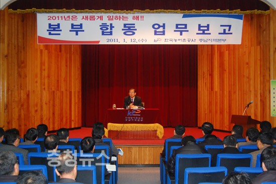 충남지역본부(본부장 방한오)는 12일 본부 회의실에서 열린 합동 업무보고회를 갖고 고객 중심의 현장밀착 경영을 더욱 강화해 나가 겠다고 다짐했다.