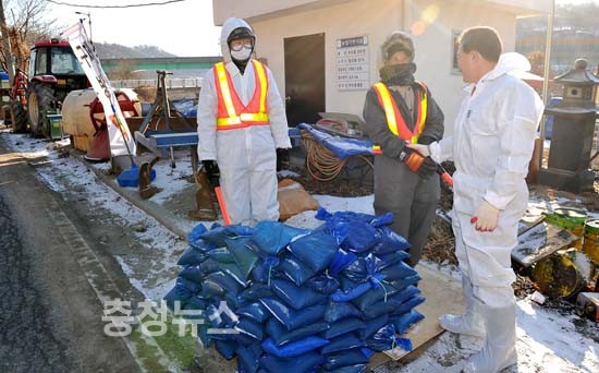 구는 지난 16일 소 605두에 대한 백신접종을 완료, 완벽한 방역을 위해 칼바람 속에서도 꿋꿋이 근무에 임하는 한편 지금까지 완벽 방역활동을 전개하고 있는 직원들과 군장병들을 격려하기 위해 지난 16일 박용갑 청장은 정생동 방역초소를 방문해 근무자들을 격려하고 함께 방역활동도 전개했다.