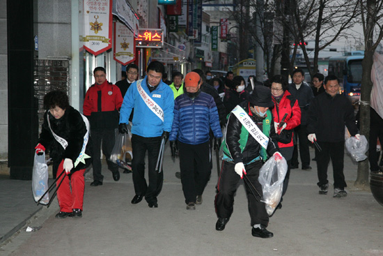 대전시 대덕구(구청장 정용기)는 쓰레기 없는 도시 만들기 일환으로 18일 신탄진역에서 염홍철대전시장, 정용기대덕구청장, 간부공무원, 신탄진 4개동 자생단체 회원등 120여명이 참여한 가운데 1월 간부공무원 일일 클린정화활동을 펼쳤다.