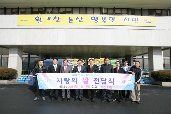 충청남도 논산시(시장 황명선) 논산청년회의소(회장 왕상진)은 지난 12일 취임식시 화환대신 받은 쌀과 회원들의 성금을 어려운 이웃위해 써 달라며 쌀 10kg 100포를 지난 19일 황명선 논산시장에게 전달했다.